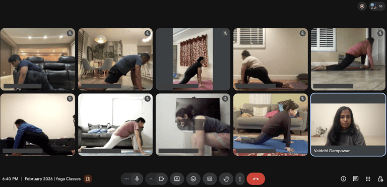 I love the holistic approach that focuses on physical, mental, and emotional well-being. Practicing with Vaidehiji has helped me feel more grounded and less overwhelmed. I know I still have a long journey ahead, but there's something about these sessions that makes me not want to quit.
